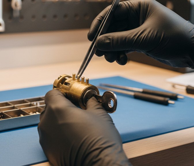 Rekeying means we adjust the internal pins of your existing lock so old keys no longer work. You receive a brand-new key without replacing the entire lock.